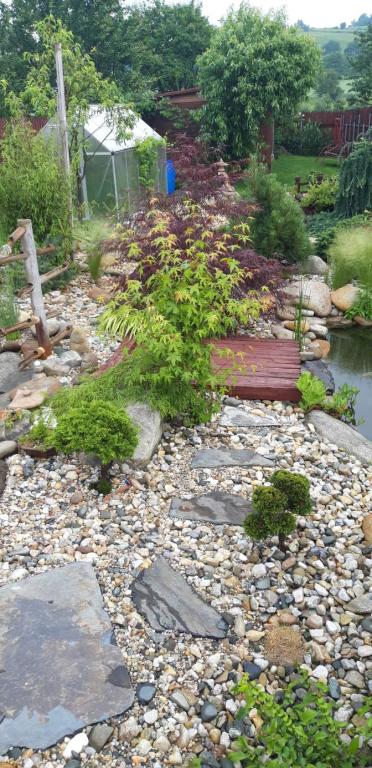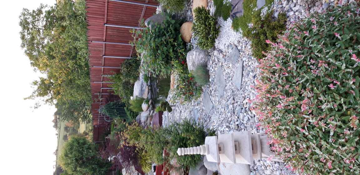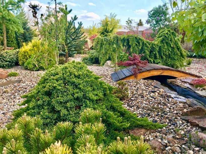 Dalšími typickými prvky japonských zahrad jsou sakury s květy symbolizujícími pomíjivost, tvarované dřeviny - od malých bonsají až po velké, k dokonalosti dovedené jehličnany, bochánky tvarovaných rododendronů, kouzelné kameny, mechové ostrůvky, či kamenné svítilny. Do japonských zahrad také patří dramatické můstky, kaligrafické nápisy, čajovny a místa pro rozjímání a hledání vnitřního klidu.